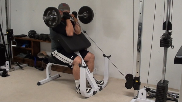 When you add in lateral-pulling resistance from the cable, you're not only curling the barbell weight, you're also pulling directly backwards against that cable resistance and adding tension to that top part.