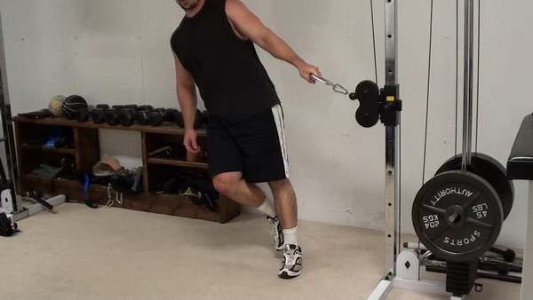 If you have an adjustable-height pulley, set it about hip level and attach a single handle. Set the heaviest weight you can on the stack - you're not lifting the weight, you're using it as an anchor.