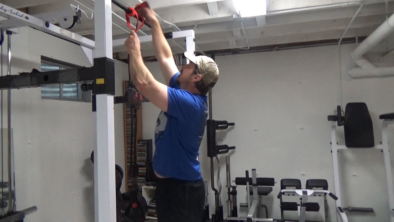 You want to loop it quite a few times around, if you're anchoring onto something small, like the chin-up bar I'm using. When you clip it back onto the strap, there shouldn't be much extra strap. They give you a big strap in case what you have to anchor on is also large.