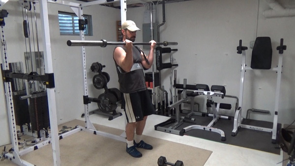 Then grab a barbell with a fairly wide grip and curl.
