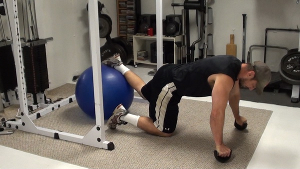 This exercise adds even MORE instability to the push-up by setting your feet on top of a constantly-shifting ball. This places great demands on the core while you're doing the exercise.