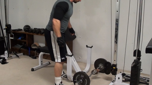 Next, pick up the barbell and set it on the bench supports.