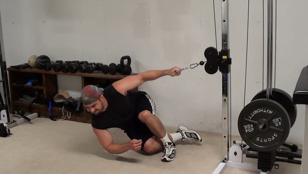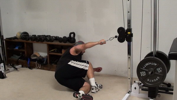 If you have an adjustable-height pulley, set it about hip level and attach a single handle. Set the heaviest weight you can on the stack - you're not lifting the weight, you're using it as an anchor.