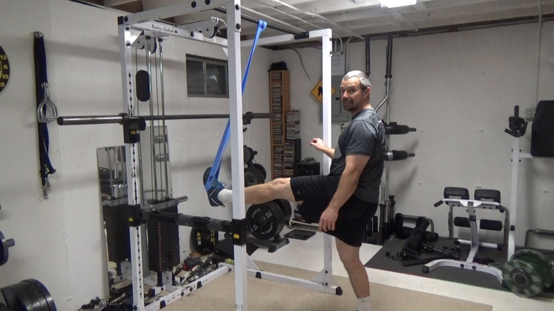 This can come in handy for some exercises, such as band-assisted chin-ups where you don't want the band to slip off your foot. In this picture, you can see I've got my foot almost vertical and the band still stays on.