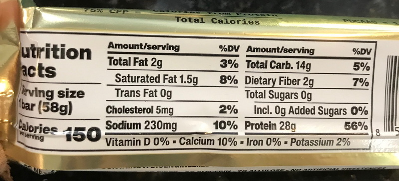 28g protein, 150 calories, and 0g sugar per bar with solid dairy/egg protein sources. Great taste and texture; fits fat‑loss and busy‑day fueling.