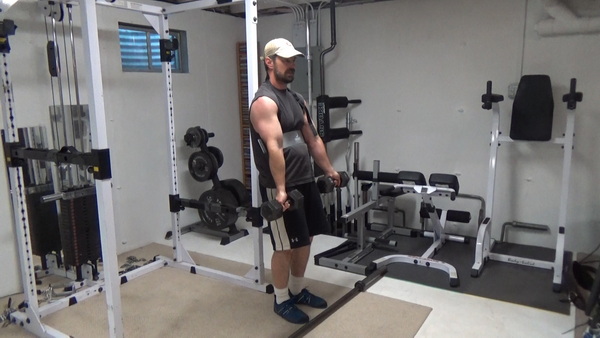 Then grab a barbell with a fairly wide grip and curl.
