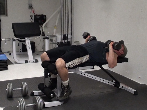 reps as you can with the light exercise (dumbbell bench press in the example below). You want to be sure you're